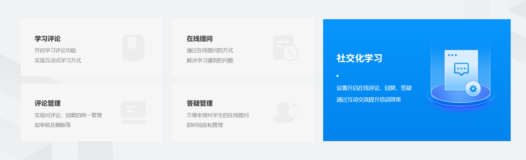 考試云內(nèi)置社交化學(xué)習(xí)功能,支持學(xué)員在課程下發(fā)表評論、提問、點贊、回復(fù),形成互動討論區(qū)。優(yōu)秀回答可被置頂或獎勵,營造積極的學(xué)習(xí)氛圍。